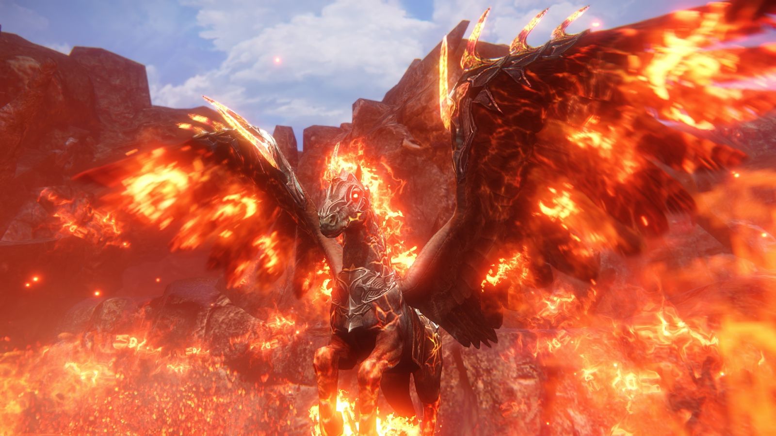 在傳說中的「被火焰吞噬的遺跡」中,骷髏士兵的數量與強度大幅的增加,中間還會有新的障礙物出現,不僅如此,還有更強力的BOSS與居住於此的傳說坐騎「極炎的卡爾利多」等待著玩家的挑戰。